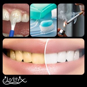 - ترک عادات غلط: استفاده از دخانیات، استفاده از نوشابه، قهوه و… میتواند به بلیچینگ دندان آسیب وارد کند و تغییر رنگ و ناراحتی را در پی داشته باشد.