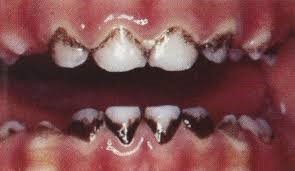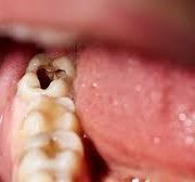 - حفره و پوسیدگی: حفره های ایجاد شده توسط باکتری ها، موجب نابودی مینای دندان ها می شوند و سوراخ های کوچکی را نیز از خود بر جای می گذارند. این سوراخ ها می توانند ظاهری تیره به خود بگیرند.