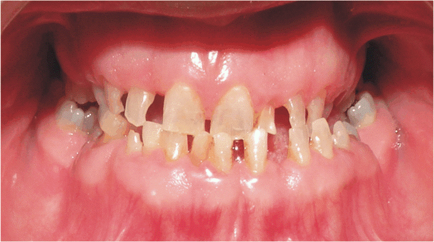 دندان هایی که به صورت غیر عادی کوچک هستند یا اندازه کوچک دارند و فاصله بین آن ها زیاد است ممکن است به درستی روی هم قرار نگیرند، بنابراین ممکن است فرد مبتلا که می تواند بزرگسال یا خردسال باشد در معرض سایش بیشتر دندان ها قرار بگیرد و یا ممکن است غذا به راحتی بین دندان ها گیر بیفتد و دندان ها را فرسوده کند.
