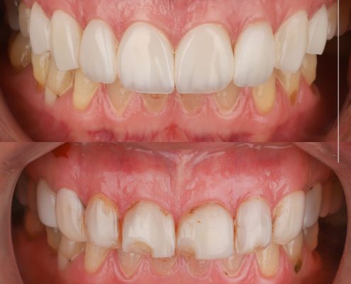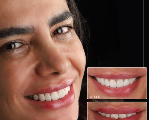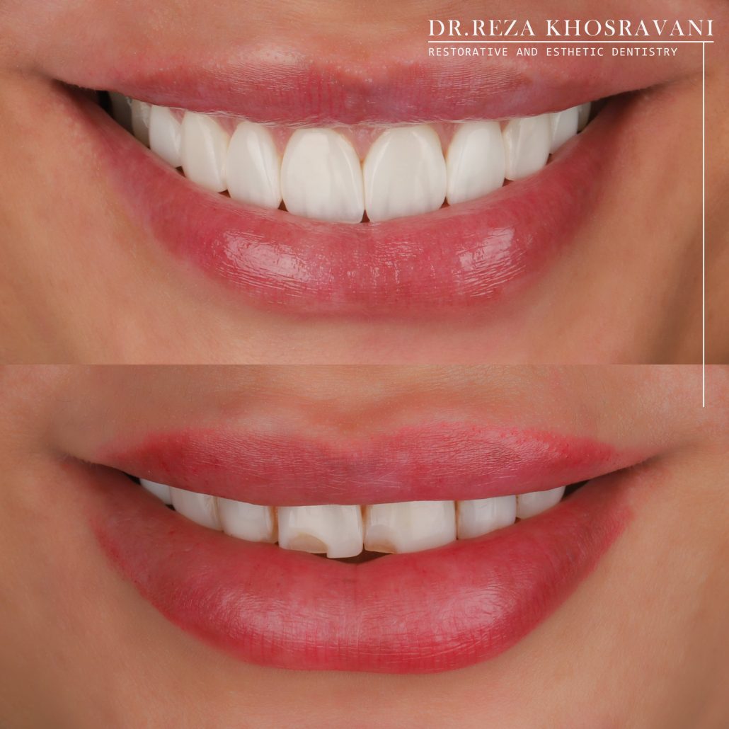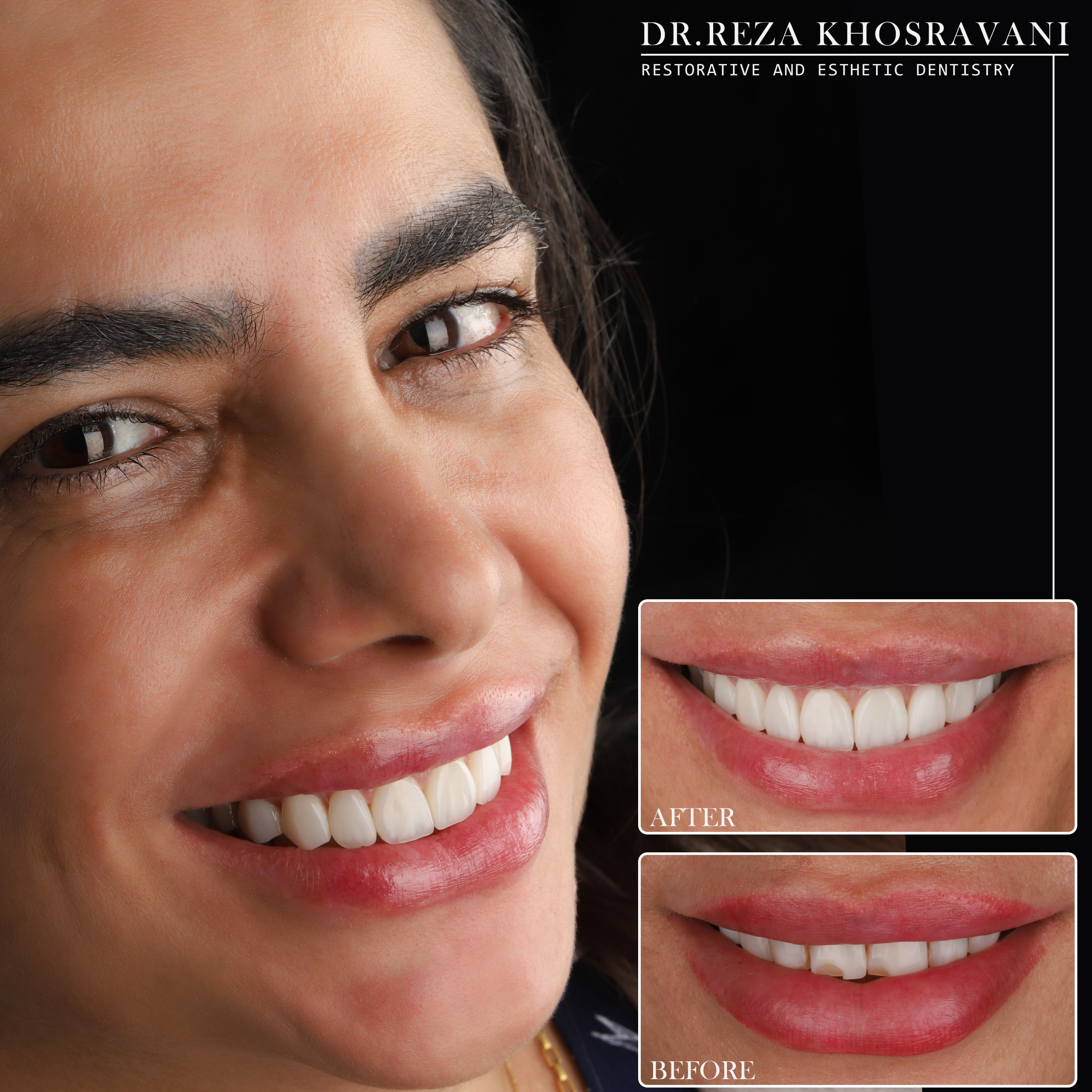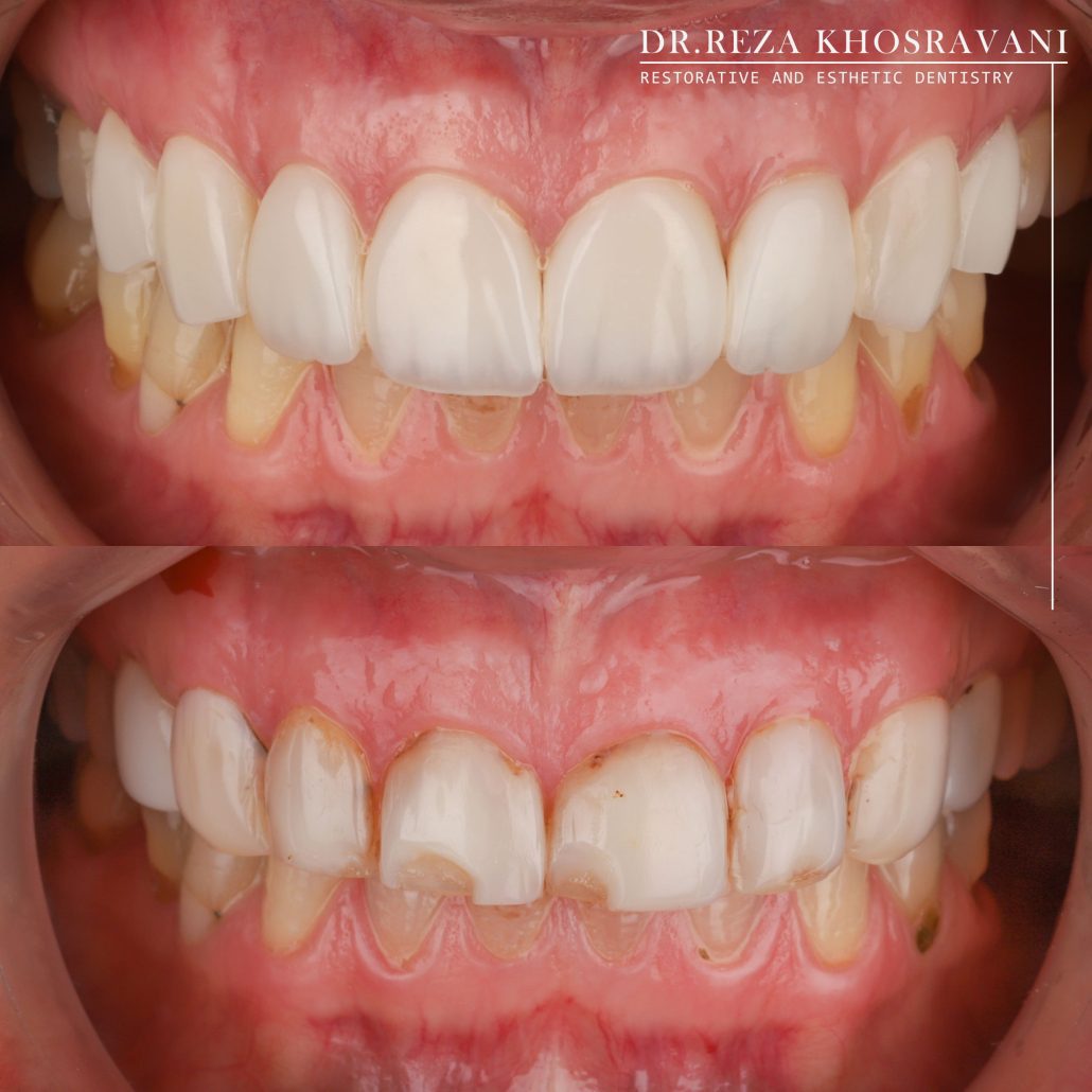 علت مراجعه: نارضایتی از رنگ و فرم دندان ها و کامپوزیت های معیوب و شکسته قدیمی
