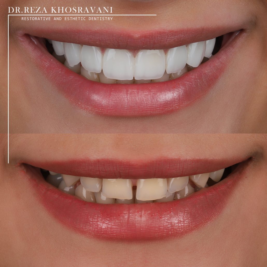 علت مراجعه: نارضایتی از رنگ و فاصله های بین دندان ها