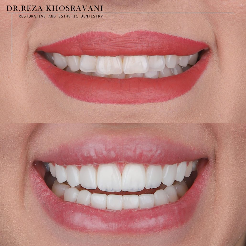 علت مراجعه: نارضایتی از رنگ و بهم ریخته گی دندان ها در فک بالا و پایین