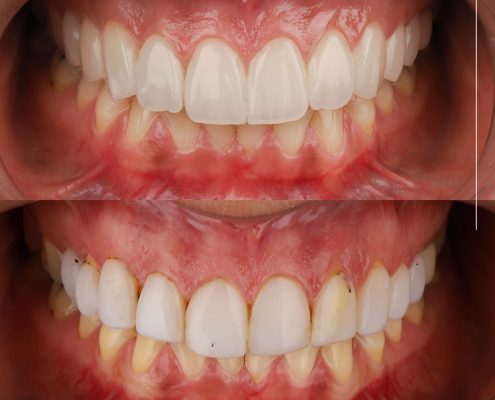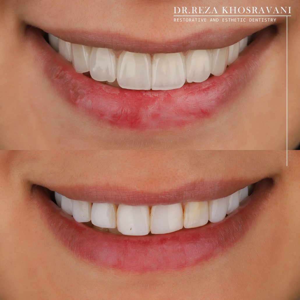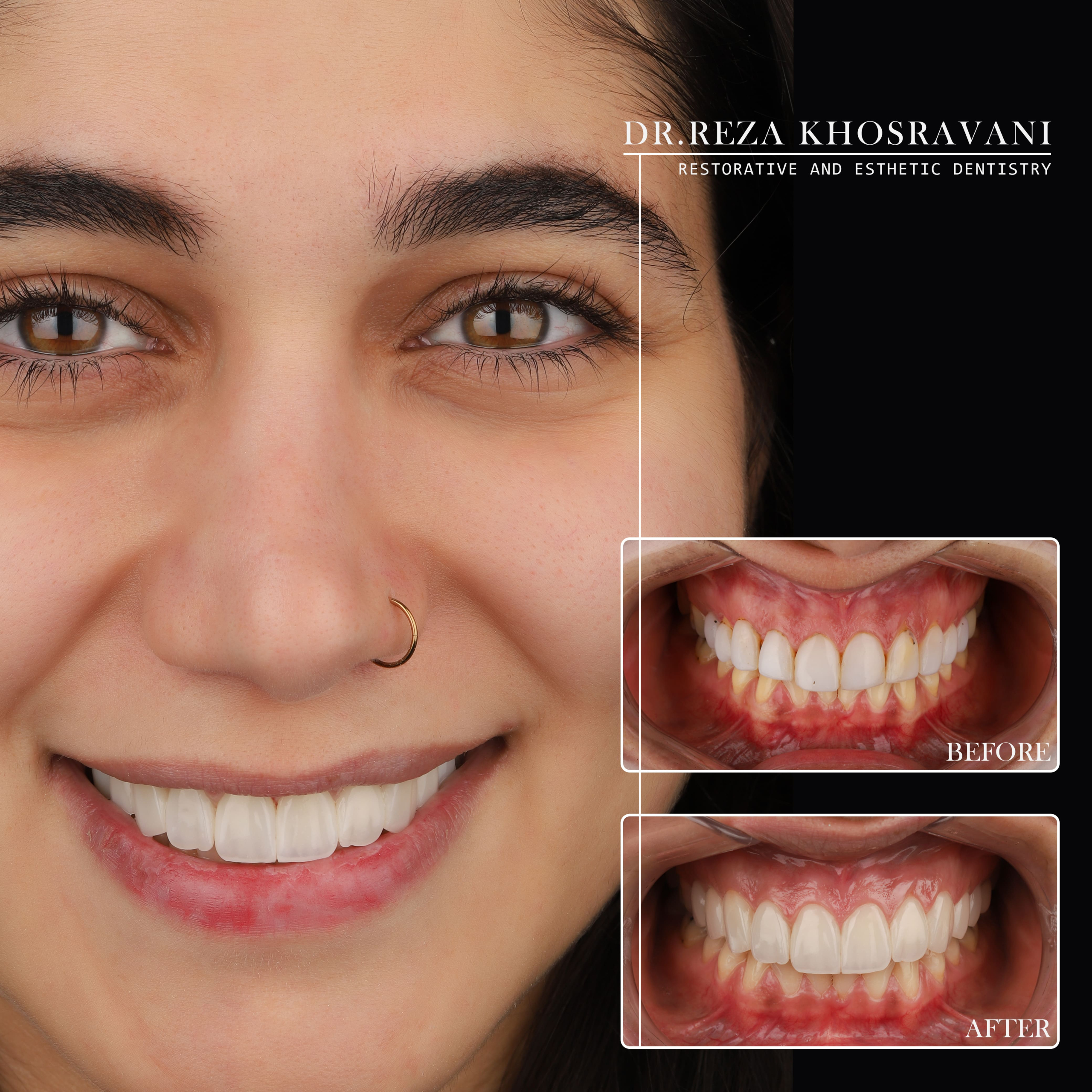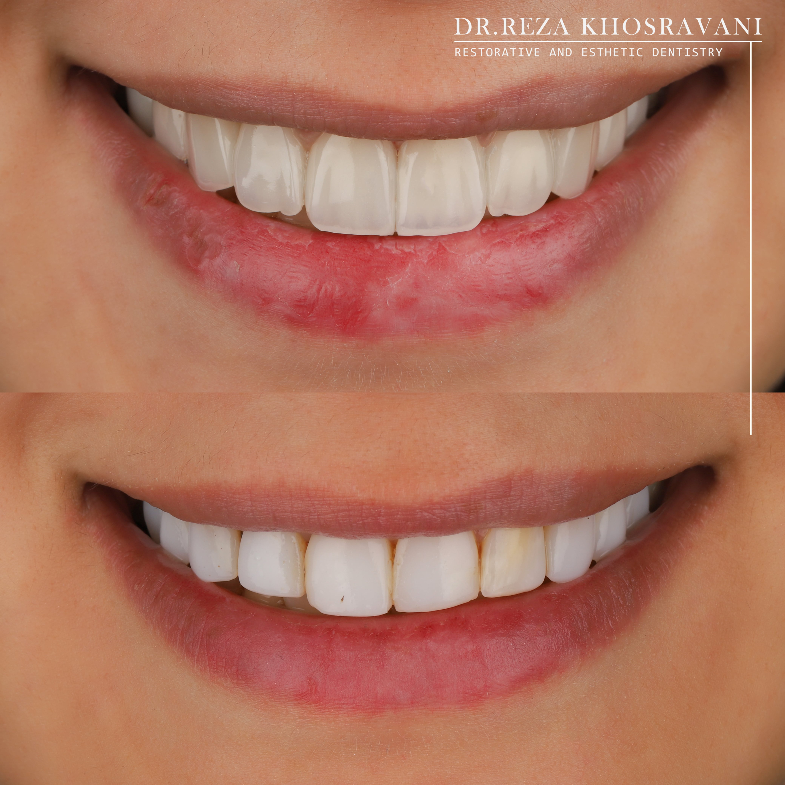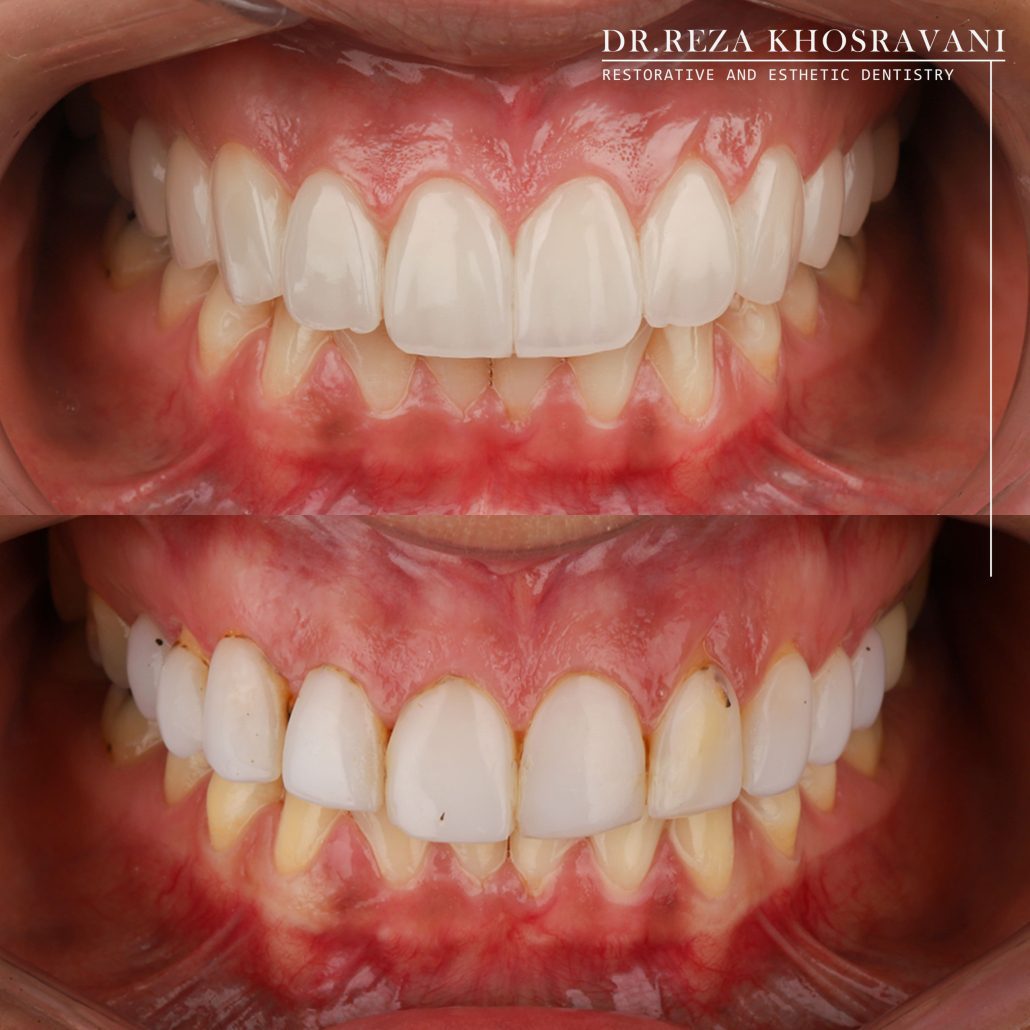 علت مراجعه: نارضایتی از رنگ و فرم دندان ها و کامپوزیت های معیوب و شکسته قدیمی